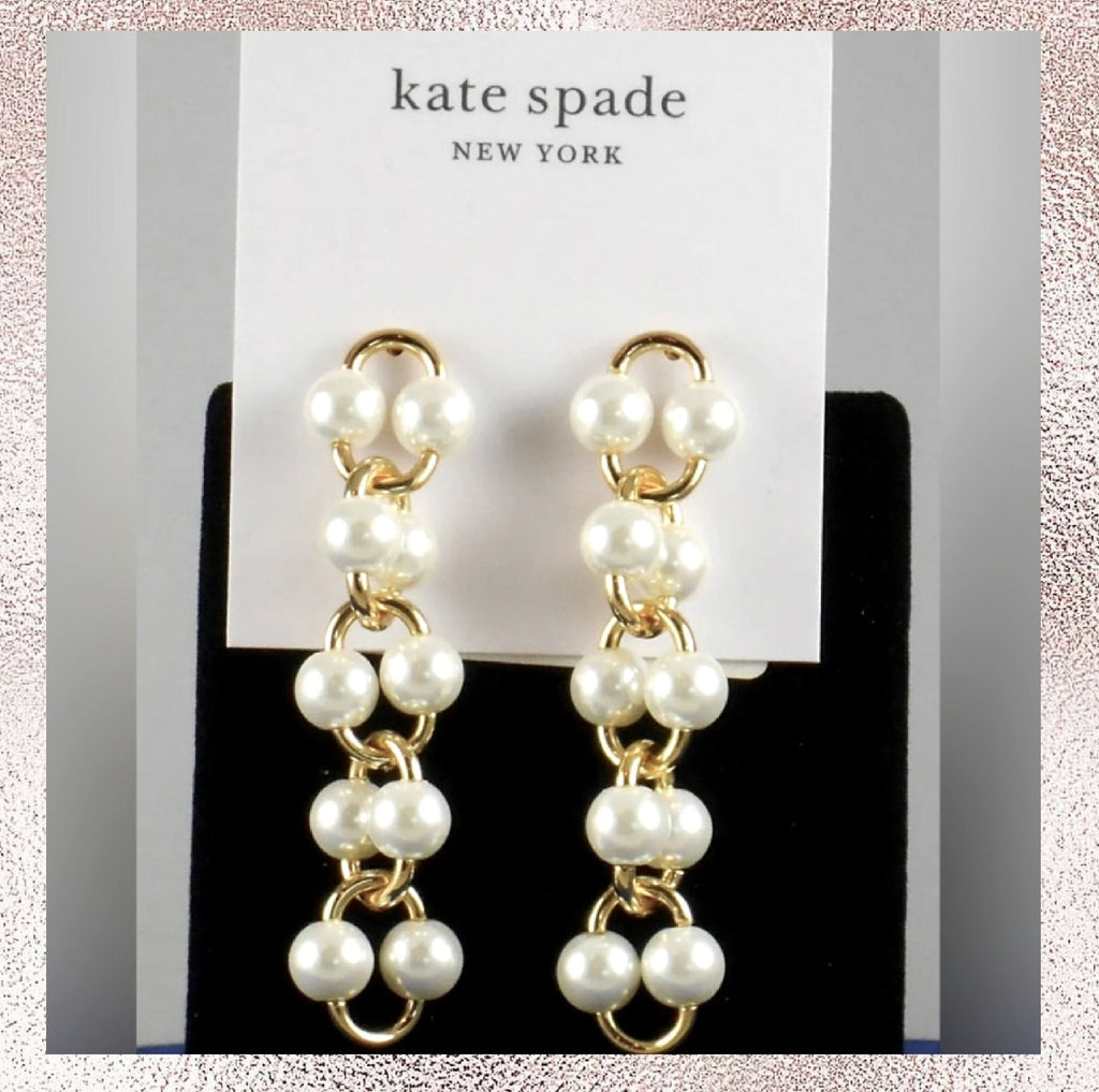 2. Authentic Kate Spade White Multi Nouveau Pearls Linear Drop Earrings