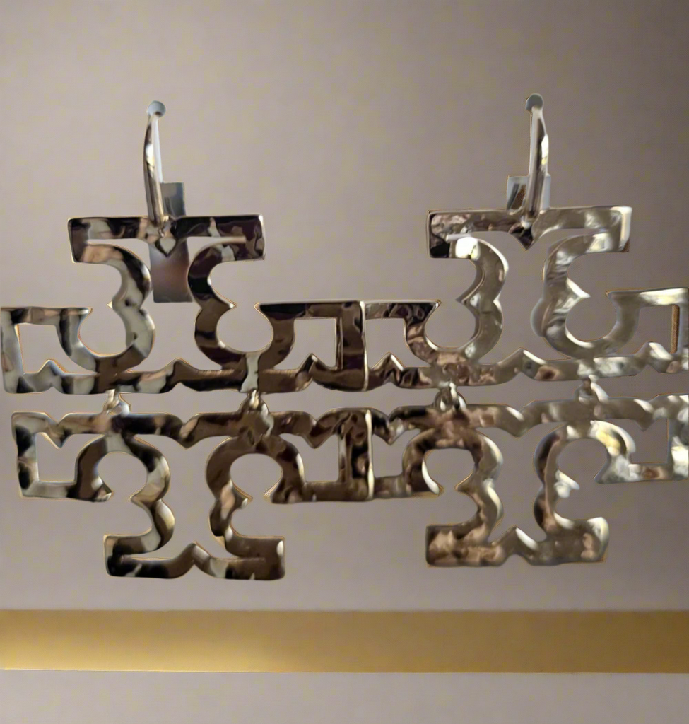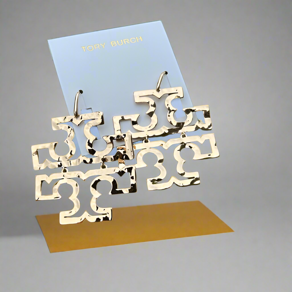 NWT Authentic Tory Burch Britten Logo Hammered Drop Earrings In Shiny Gold