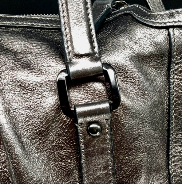 Esta HERMOSA pieza contiene todos los elementos asociados con el estilo, la clase y, lo más importante, la artesanía que uno puede esperar de The House Of Burberry's. El cuero metálico plateado está en un estado excepcional con una suavidad mantecosa que no se astilla ni se pela y tiene un brillo magnífico.