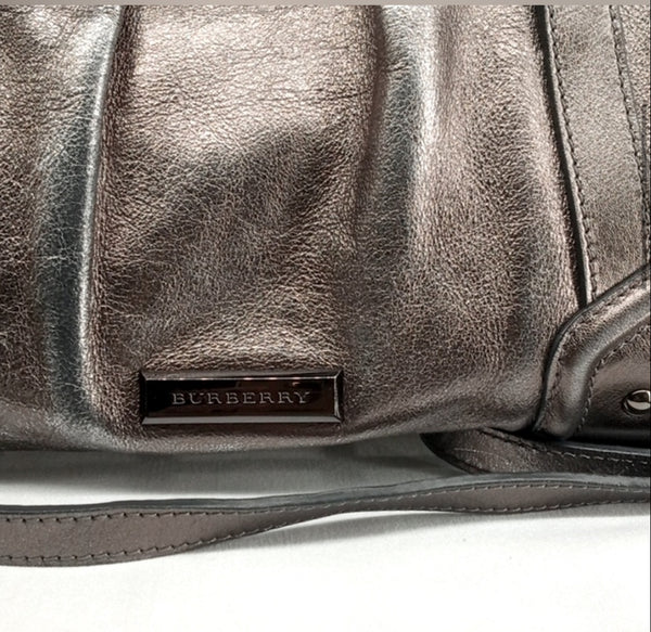 EUC Auténtico bolso de hombro Burberry Protsum plateado metalizado
