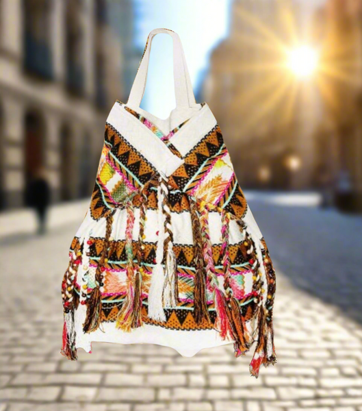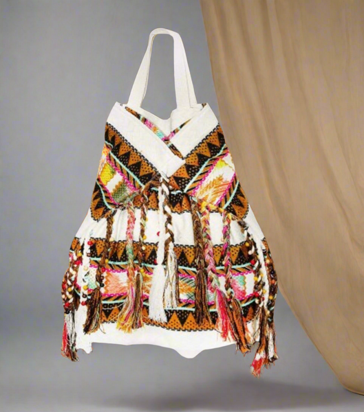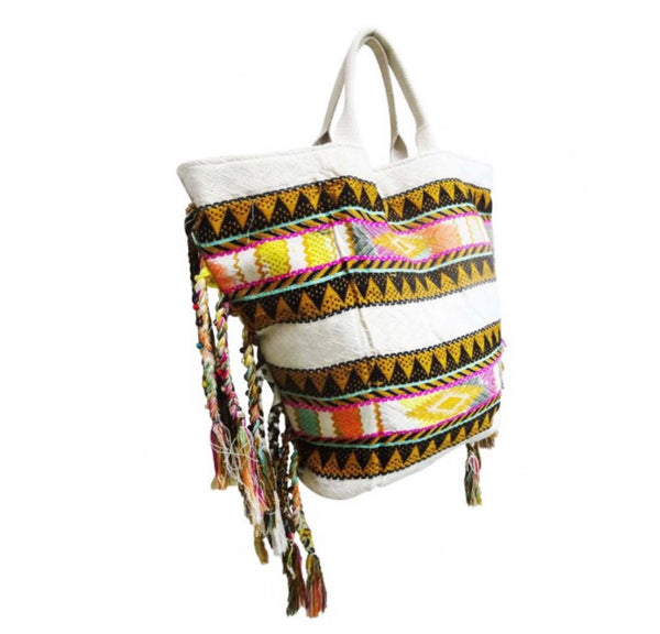 Mochila/Tote con flecos Travel Boho-MI- Tres bolsos en uno