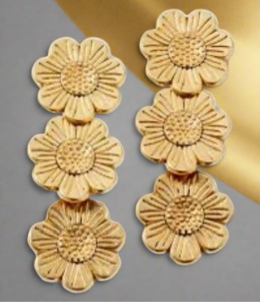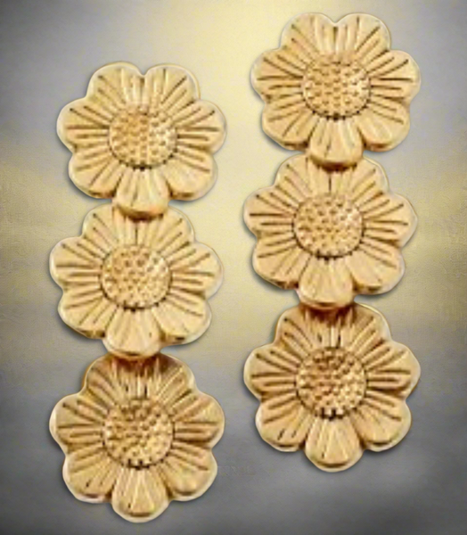 NWT Authentic Binker + Eliza Daisy 24K Gold Plated Triple Drop Earrings