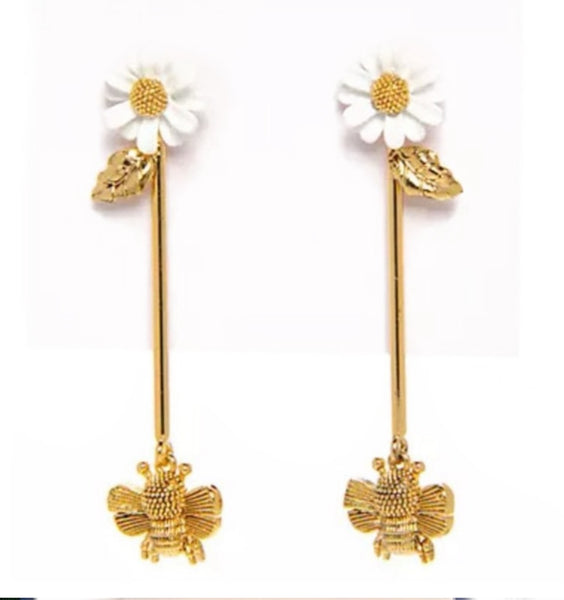 Elegant gold and white floral drop earrings perfect for any occasion. Add a touch of sophistication to your outfit with these beautifully crafted accessories.