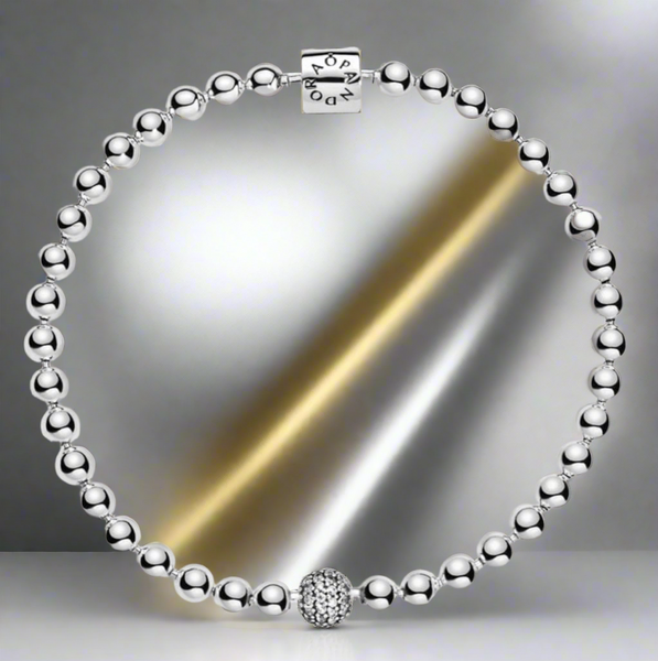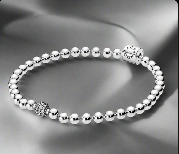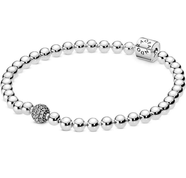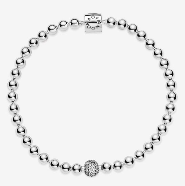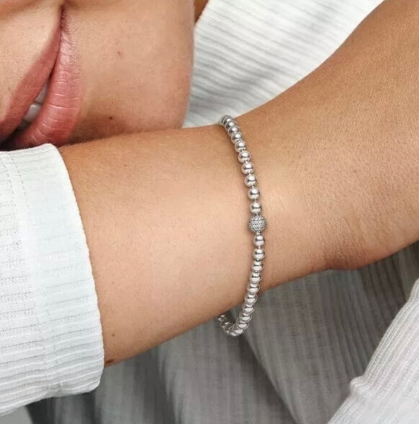 NWT Authentic Pandora Sterling Silver Beads & Pave Bracelet with CZ Size 7.1”