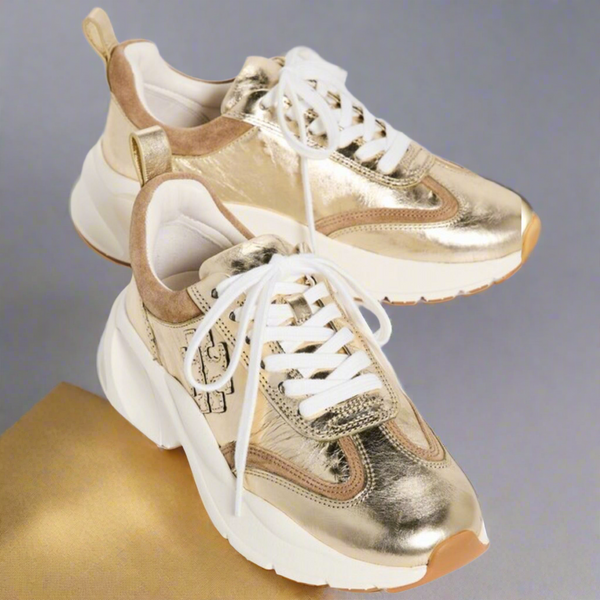 Tory Burch T Monogram Good Luck Sneakers Size 11 M Gold Alce