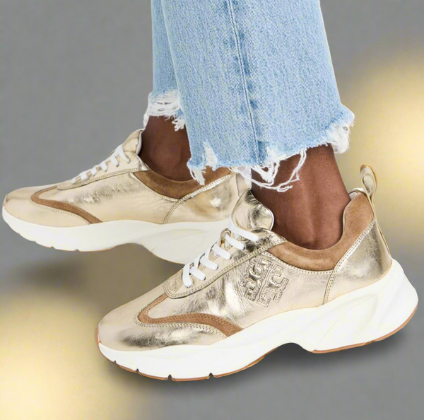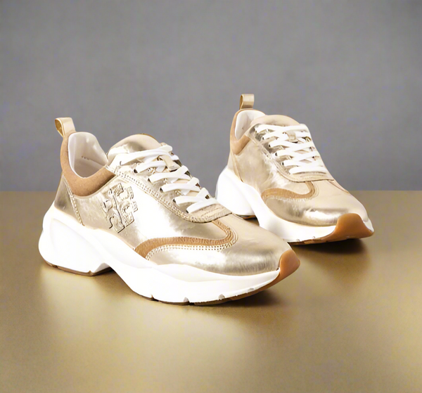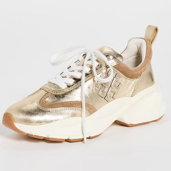 NWT Authentic Tory Burch T Monogram Good Luck Sneakers Size 11 M Gold