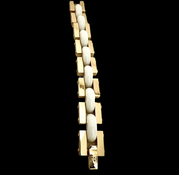 Tory Burch Chunky Bold Statement Polished Gold Chain Bracelet & Ivory Enamel Inlays to