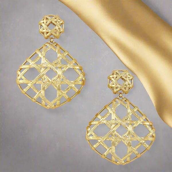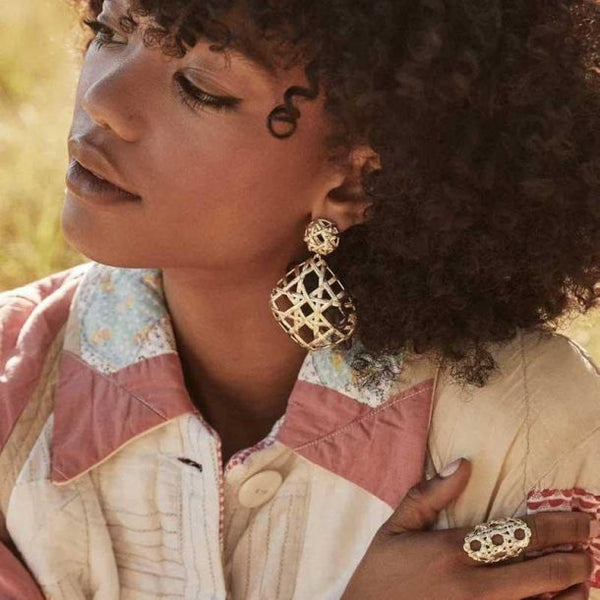 Meet the golden girl of statement earrings. The Natalie Statement Earrings in Gold Plated feature a traditional bohemian rattan, dipped in modern-day metallic. She's the coolest girl you meet at a music festival, or your fave social media follow you've met IRL - she's warm, familiar, and the most-interesting gal in the room. Metal: 14k Gold Plated Over Brass Imported