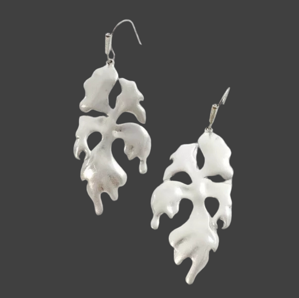 Heads up! All eyes are on the Savannah Drop Earrings in Rhodium Silver this Season. Hand-carved, then 3D scanned and digitally recreated, this statement drop earring is full of trending texture. Featuring an eye-catching psychedelic shape and tropical aesthetic, the Savannah Drop Earrings are dreamy new addition to your jewelry collection. • Metal: 14kRhodium Silver Plated Over Brass