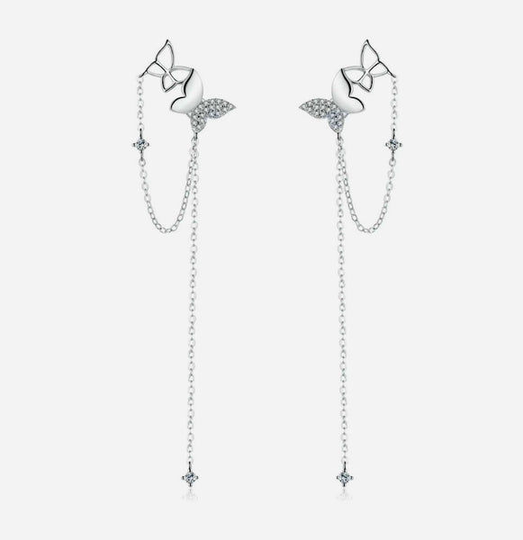 Ladies Bedazzling Butterflies Earrings In Sterling Silver.