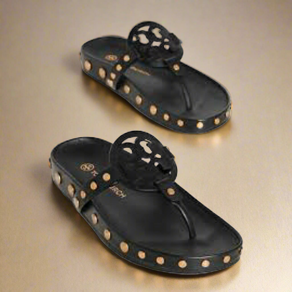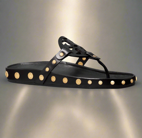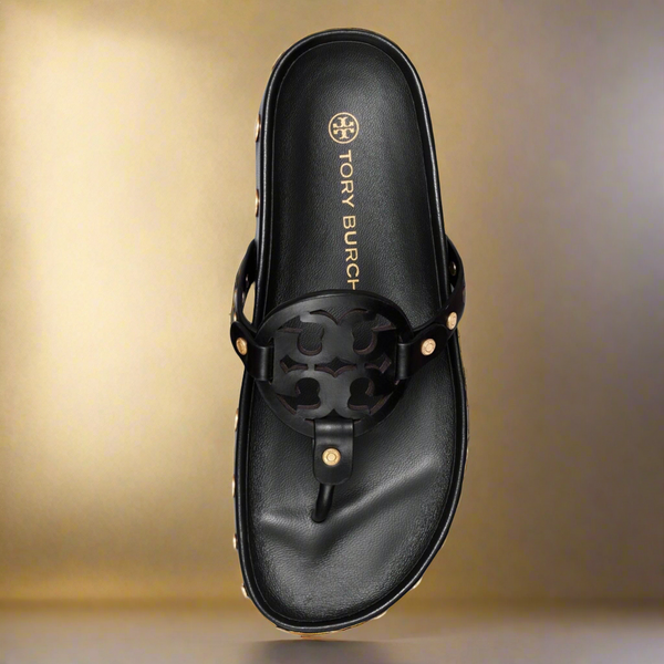 NWT Authentic Tory Burch Miller Cloud Gold Coin Thong Sandals Perfect Black Size 11 M
